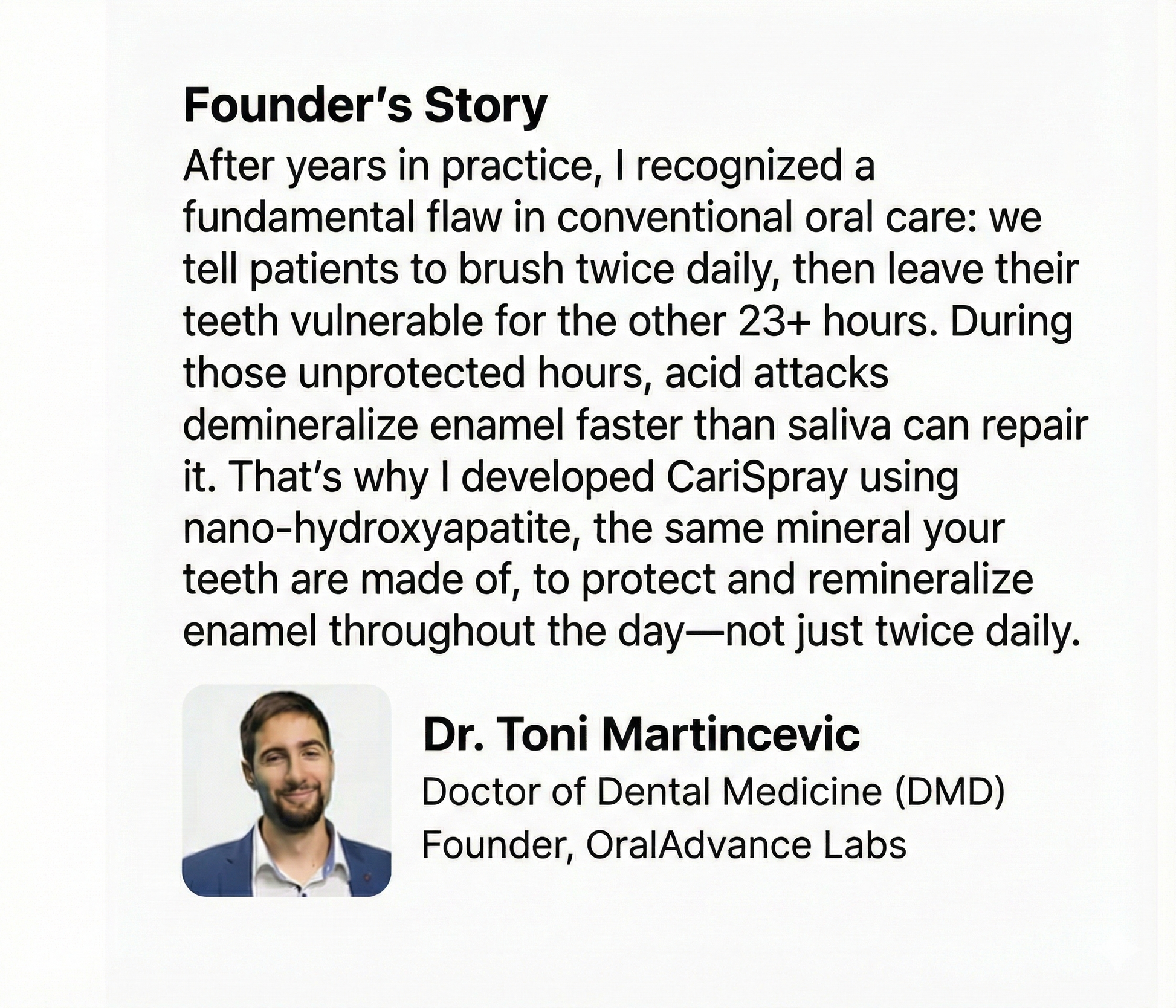 Hey, I'm Dr. Toni – a dentist, founder of OralAdvance Labs and creator of CariSpray
