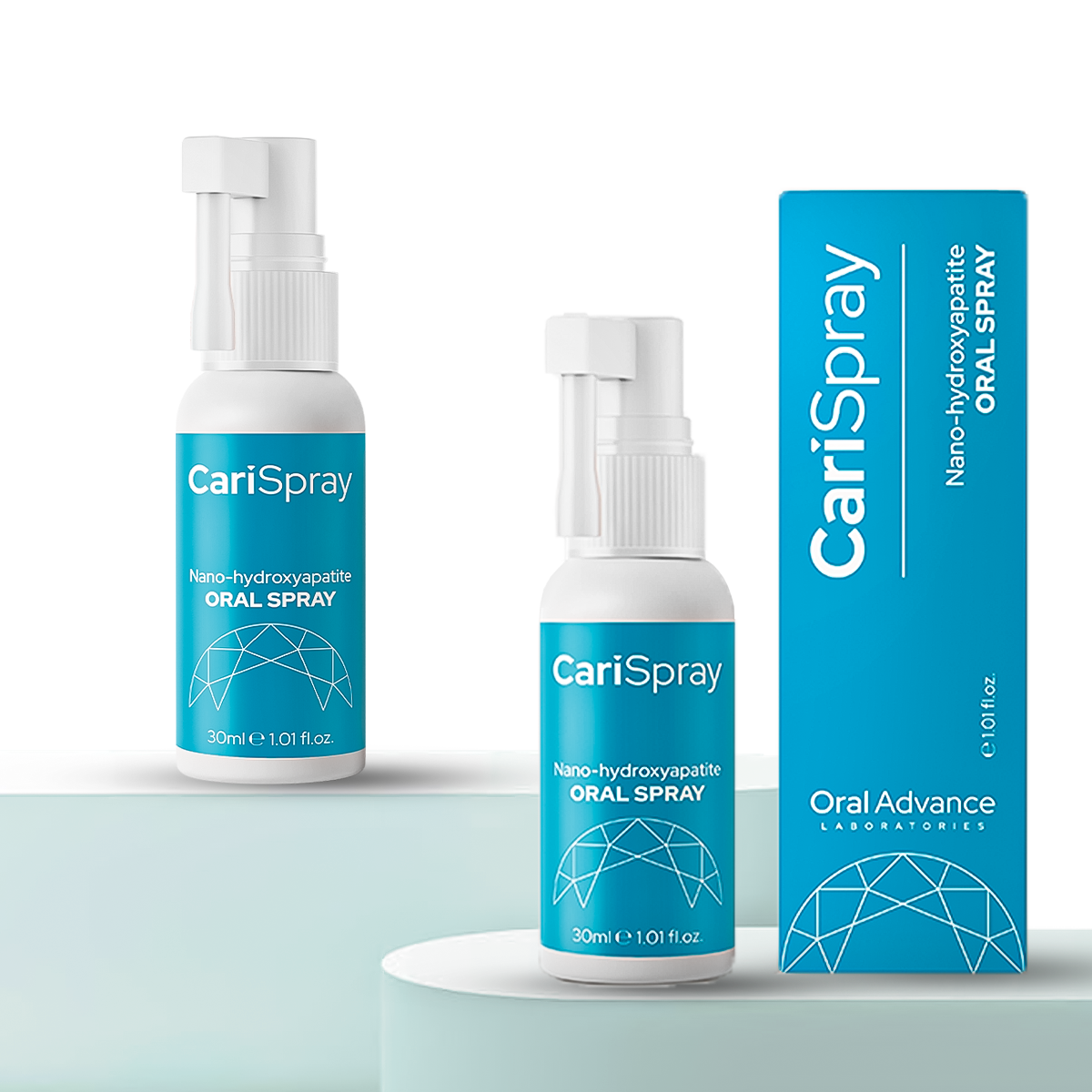 Restore and protect your teeth on the go with CariSpray. Its nano-hydroxyapatite formula strengthens enamel, soothes sensitivity, and keeps your smile naturally radiant.